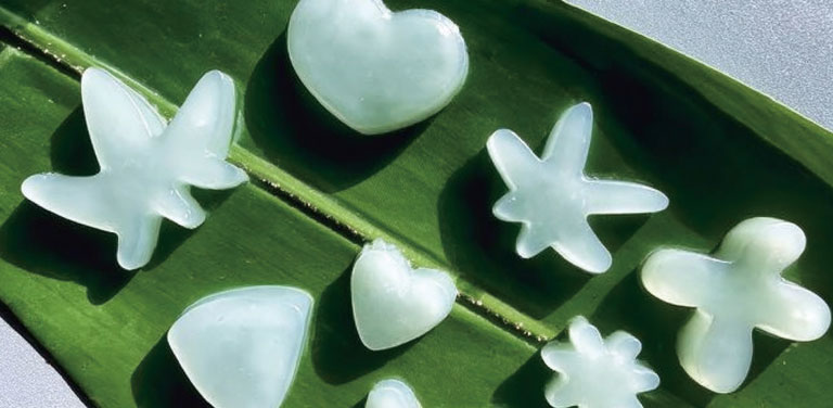 外观:乳白色或半透明乳白色,有天然色泽感,表面质光滑湿润,质地 Q 弹脆韧,外观原始状态为凝胶状厚膜,加工后为植物状、卡通等趣味性形状。 气味:无其他异味 |