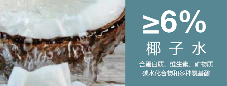 | 配料表 INGREDIENTS | 椰子果(椰子水、椰子肉)、白砂糖、酪朊酸钠、单,双甘油脂肪酸酯、蔗糖脂肪酸酯、羧甲基纤维素钠 |