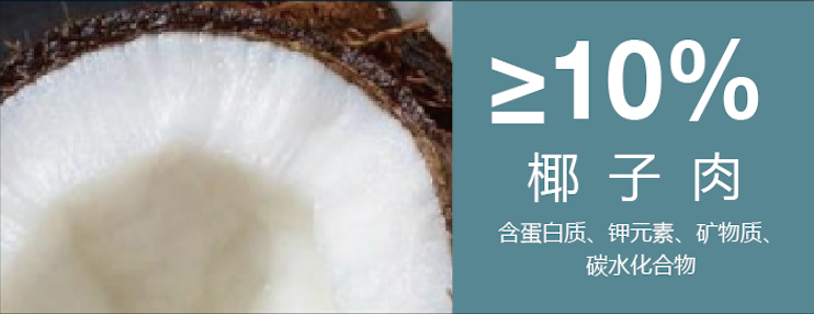 | 配料表 INGREDIENTS | 椰子水、椰子果肉、白砂糖、酪酰酸钠、单,双甘油脂肪酸酯、羧甲基纤维素钠、黄原胶、瓜尔胶、刺槐豆胶、海藻酸钠 |